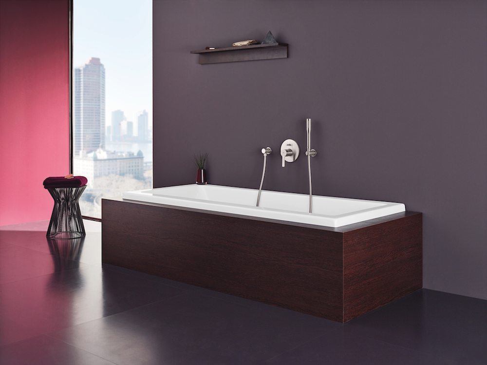 De uitgebreide reeks modellen omvat een wastafelkraan met draaibare uitloop, een vrijstaande badvuller, een op de muur gemonteerd wastafelmodel en een wastafelexemplaar met drie gaten. Varianten zijn verkrijgbaar in schitterende verchroomde afwerking en matte SuperSteel.